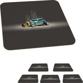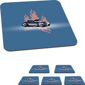 Sous-verres pour les lunettes - Mancave - voitures - Vintage - Marron - Blauw - 10x10 cm - 6 pièces