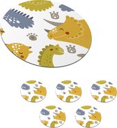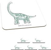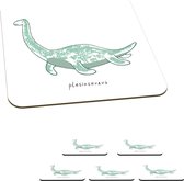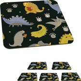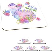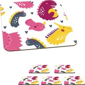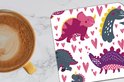Sous-verres pour verres - Dino - Coeur - Motifs - Rose - Filles - Dinosaurus - 10x10 cm - Sous-verres en verre - 6 pièces