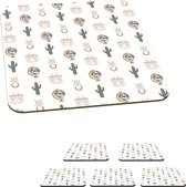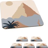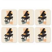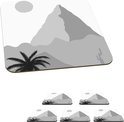 Sous-verres pour verres - Illustration - Pyramide - Zwart - Wit - 10x10 cm - Sous-verres en verre - 6 pièces