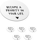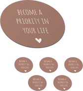 Sous-verres pour verres - Rond - Citation anglaise Devenez une priorité dans votre vie avec un cœur sur fond blanc - 10x10 cm - Sous-verres en verre - 6 pièces