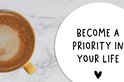 Dans cette image, la citation anglaise Devenir une priorité dans votre vie est écrite en lettres noires sur fond blanc. Sous la citation se trouve un petit cœur.