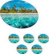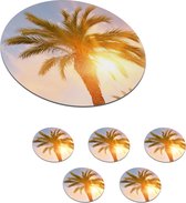 Sous-verres pour verres - Rond - Palmier - Mer - Été - 10x10 cm - Sous-verres en verre - 6 pièces