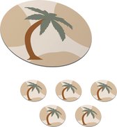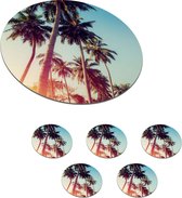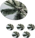 Sous-verres pour verres - Rond - Palmier - Tropical - Été - 10x10 cm - Sous-verres en verre - 6 pièces