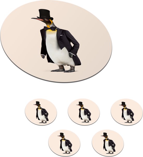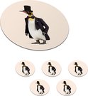 Sous-verres pour verres - Rond - Pingouin - Animal - Chapeau - Zwart - 10x10 cm - Sous-verres en verre - 6 pièces