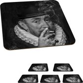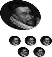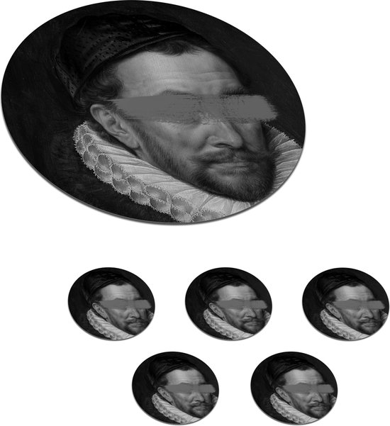 Sous-verres pour verres - Rond - Portrait de Guillaume Ier - Adriaen Thomasz - Zwart - Wit - 10x10 cm - Sous-verres en verre - 6 pièces