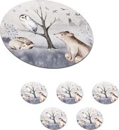 Sous-verres pour verres - Ronds - Hiver - Vogel - Cerf - 10x10 cm - Sous-verres - 6 pièces