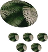 Sous- Sous-verres pour verres - Ronds - Feuilles de palmier - Été - Tropical - 10x10 cm - Sous-verres en verre - 6 pièces