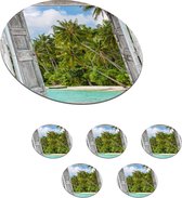 Sous-verres pour verres - Ronds - Tropical - Palmier - Transparent - Mer - 10x10 cm - Sous-verres - 6 pièces