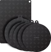 Sous-verres résistant à la chaleur - Sous- Sous-verres pour Casseroles et poêles - Sous-verres pour verres - Tapis en Siliconen - Supports pour casseroles et Gants de four de Maniques - Ouvre-pot - Aide à l'égouttage - Rond - Noir - 4 pièces