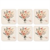 Dessous de verre Fleurs - Citation - Beige - Ruban - 10x10 cm - 6 morceaux - Sous pour Verres et Tasses