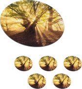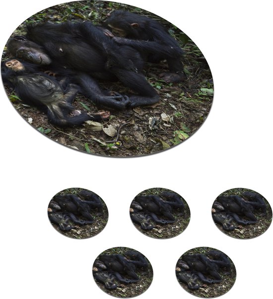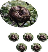 Sous-verres verres à verres - Ronds - Singes - Endormis - Forêt - 10x10 cm - Sous-verres en verre - 6 pièces
