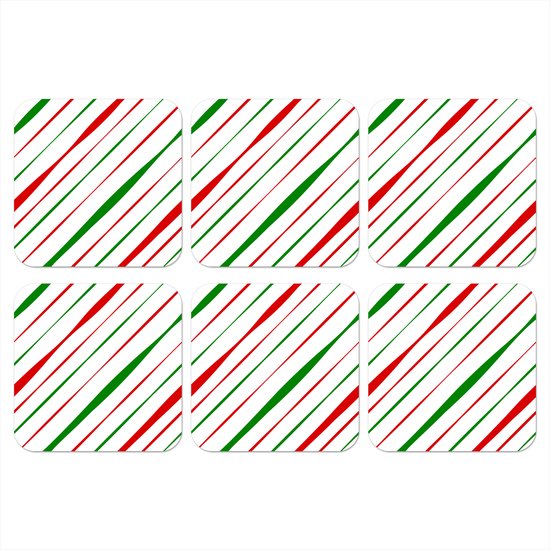 Sous-verres verres pour verres - Motifs - Noël - Rayures - 10x10 cm - Sous-verres en verre - 6 pièces - Décoration de table de Noël - Décoration de table de Noël - Décoration de table