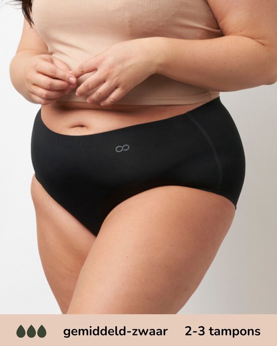 Sous-vêtements menstruels et d'incontinence Moodies Undies - Hiphugger taille haute sans couture - Gousset modéré - Zwart - Taille XL