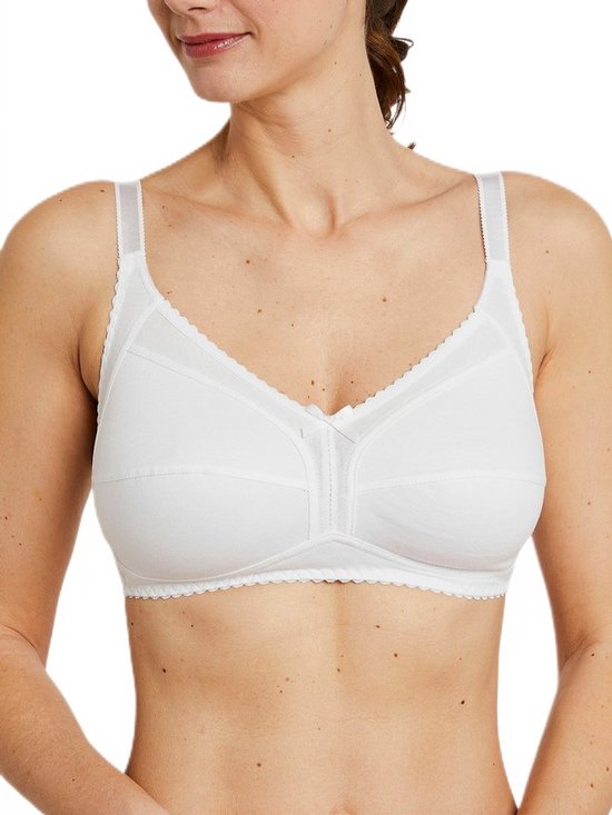 Ce soutien-gorge à armatures offre la douceur féminine et le confort du coton extensible. Il s'adapte exceptionnellement bien, offre un bon maintien et sépare les seins de manière optimale grâce à la hauteur astucieusement conçue du bonnet central. Il est magnifiquement féminin et possède un picot élastique en haut des bonnets 2 pièces. Bonnets et base doublés en coton. Bretelles élastiques et réglables au dos. Dos en forme d'entonnoir pour un confort et un soutien optimaux. Triple fermeture dos en 3 positions. soutien-gorgeTaille : 90, 95, 100, 105, 110, 115, 120, 125 ; Taille de bonnet : B, C, D, E, F