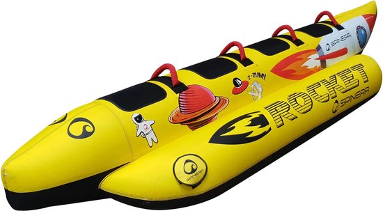 Cette banane pour 4 personnes, fabriquée selon les normes et durabilité les plus élevées, est entièrement recouverte d'une housse en nylon. La barre de remorquage est soigneusement cousue à plusieurs points de remorquage, soulignant la qualité exceptionnelle de Spinera . Les poignées en nylon souple, soutenues par des coussinets en néoprène, offrent confort et durabilité. Amusez-vous, même si cette « fusée » vous lance occasionnellement à l'eau !