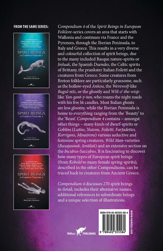Compendium 4 of the Spirit Beings in European Folklore-series covers an area that starts with Wallonia and continues via France and the Pyrenees, through the Iberian Peninsula, to Italy and Greece.