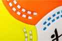 Ballons de football de plage SportX, dans la combinaison de couleurs blanc, jaune et orange, avec des accents bleus. Poids : 300-320 grammes. Mat?riau : pvc mat. Diam?tre : 22 cm. ?paisseur des couches : 2,7 mm. Livr? non gonfl?.