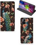 Stand Case Samsung Galaxy M31 Phone Case Peacock avec des Fleurs