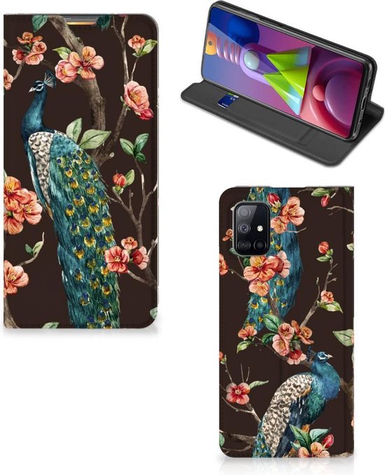 Coque Stand Samsung Galaxy M51 Peacock avec Fleurs