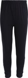 Le pantalon a une taille élastique et des revers sur les jambes.