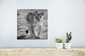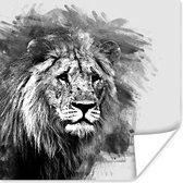 Staring lioness - Poster papier noir et blanc 30x30 cm - Tirage photo sur Poster (décoration murale salon / chambre) / Poster Animaux sauvages
