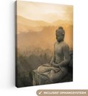 Statue de Bouddha au coucher du soleil 90x120 cm - Tirage photo sur toile (Décoration murale salon / chambre)