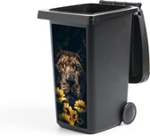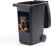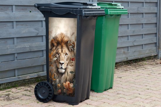 Autocollant poubelle - Lion - Animaux sauvages - Plantes - Nature - Fleurs - Afvalcontainer