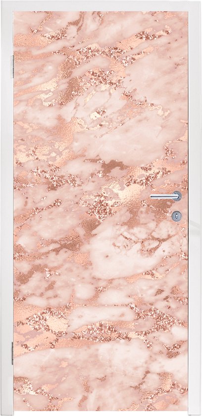 Sticker de porte Marbre - Luxe - Or rose - Rose - Glitter - Aspect marbre - 95x215 cm - Poster de porte
