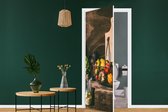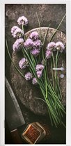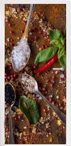 Sticker de porte Planche à découper - Herbes - Cuillère - Cuisine - Rustique - Mortier - Ciboulette - 80x205 cm - Poster de porte