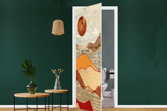 Sticker de Porte Vintage - Journal - Bronze - Abstrait - Paysage - Couleurs - 95x235 cm - Affiche de Porte