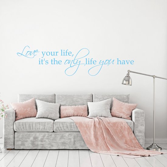 L'autocollant mural «aime ta vie, c'est la seule vie que tu as» te permet d'atterrir les deux pieds sur le sol. Un beau sortilège qui parle la réalité et la vérité, aimez votre vie car c'est la seule vie que vous avez. Un sticker mural décoratif que vous pouvez accrocher n'importe où dans la maison, que ce soit le salon ou la chambre. Des lettres gracieuses qui indiquent où est la vie et ce qui est important. Muursticker4sale a ce sticker mural disponible en trois tailles différentes.