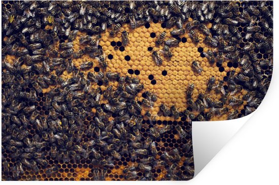 Sticker Muursticker Abeilles - nid d'abeille nid d'abeille - 60x40 cm - film autocollant - sticker mural repositionnable