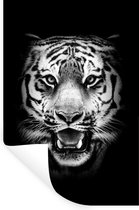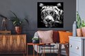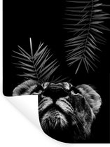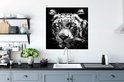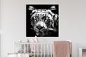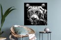 Sticker Muursticker Animaux en gros plan en Zwart- Wit - Gros plan léopard de Perse sur fond noir en noir et blanc - 50x50 cm - film adhésif autocollant - sticker mural repositionnable