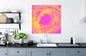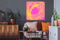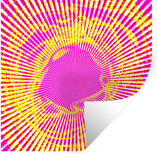 Sticker Muursticker Art psychédélique - Art psychédélique aux rayons roses et jaunes - 80x80 cm - film adhésif autocollant - sticker mural repositionnable