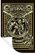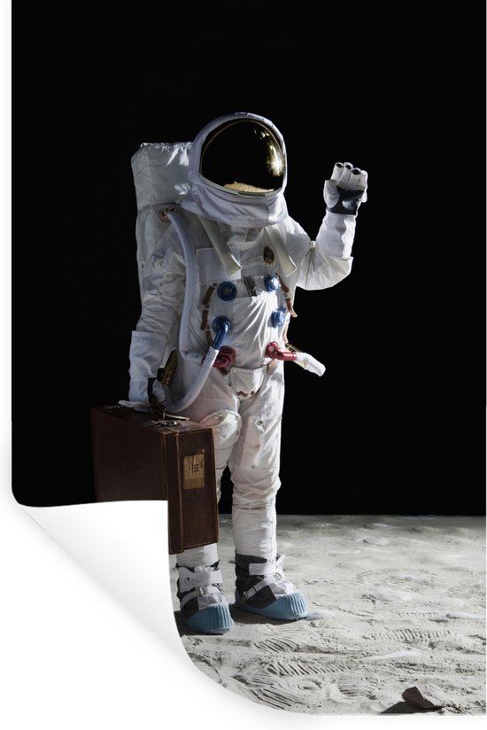 Sticker Muursticker Astronautes dans l'espace - Astronaute dans l'espace portant valise et agitant - 60x90 cm - film adhésif autocollant - sticker mural repositionnable