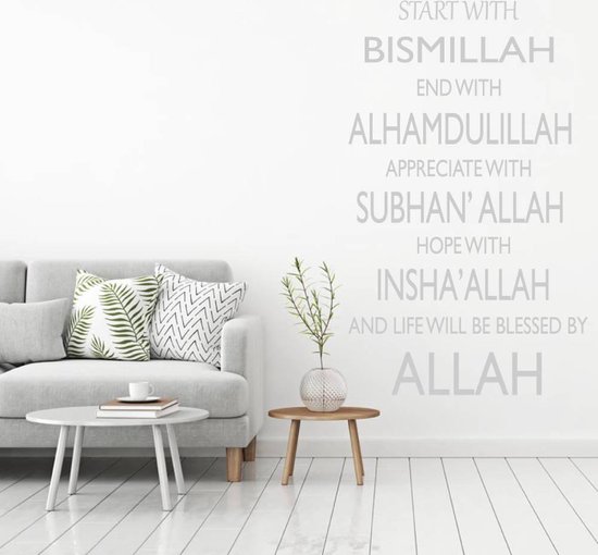 Sticker Muursticker Bismillah Alhamdulillah - Argent - 100 x 167 cm - Sticker mural