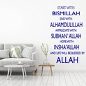 Dans la vie, nous avons tant de belles choses pour lesquelles nous devons être reconnaissants. En termes islamiques, en arabe, Allah est remercié pour ces choses spéciales qui nous sont arrivées. Le sticker mural Bismillah Alhamdulillah, signifie qu'au nom d'Allah, vous remerciez Allah pour ces belles choses. Ce message est extrêmement précieux pour de nombreuses personnes. Un magnifique sticker mural qui ajoute un message spécial à votre intérieur. Le sticker mural est disponible dans toutes sortes de couleurs et de tailles pour qu'il s'agence toujours à votre intérieur. C'est un cadeau précieux à rapporter à la maison ou à offrir un autre cadeau.