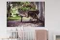 Sticker Muursticker Brouettes avec fleurs - brouette ancienne utilisée comme bac à fleurs - 120x80 cm - film autocollant - sticker mural repositionnable