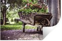Sticker Muursticker Brouettes avec fleurs - brouette ancienne utilisée comme bac à fleurs - 30x20 cm - film autocollant - sticker mural repositionnable