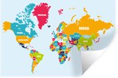 Sticker Muursticker Cartes du monde du Wereldkaart - Couleurs de la carte du monde - 60x40 cm - film adhésif autocollant - sticker mural repositionnable