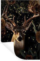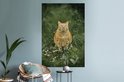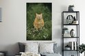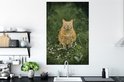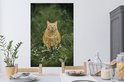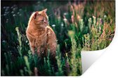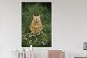 Sticker Muursticker Champ de fleurs d' Animaux - Chat rouge aux yeux verts dans un champ de fleurs - 80x120 cm - film autocollant - sticker mural repositionnable