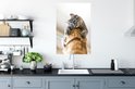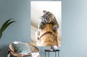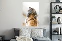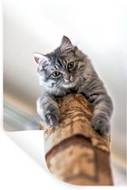 Sticker Muursticker Chats - Chat curieux sur griffoir - 60x90 cm - feuille autocollante - sticker mural repositionnable