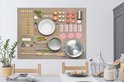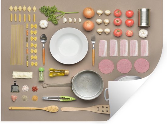 Sticker Muursticker Flat Lay Food - Table avec accessoires de cuisine - 120x90 cm - film autocollant - sticker mural repositionnable