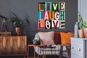 Sticker Muursticker Happy quotes - Happy quote Live, Laugh, Love avec différentes lettres - 50x50 cm - film adhésif autocollant - sticker mural repositionnable