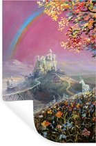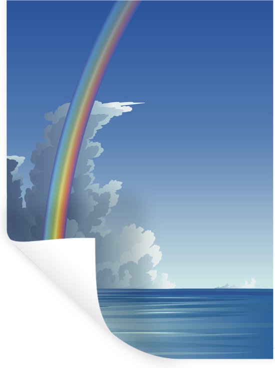 Sticker Muursticker Illustration arc-en-ciel - illustration arc-en-ciel au dessus de la mer - 90x120 cm - film adhésif autocollant - sticker mural repositionnable