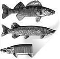 Sticker Muursticker Illustration Pêche - trois poissons - 30x30 cm - film adhésif autocollant - sticker mural repositionnable
