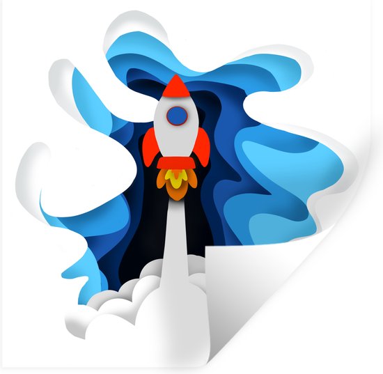 Sticker Muursticker Illustration pour enfants Espace - Illustration pour enfants d'une fusée - 50x50 cm - film adhésif autocollant - sticker mural repositionnable