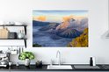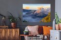 Sticker Muursticker Indonésie - Brouillard en Indonésie - 120x80 cm - film adhésif autocollant - sticker mural repositionnable