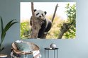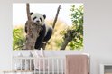 Sticker Muursticker Jeunes pandas - Panda appuyé sur arbre - 120x80 cm - film adhésif autocollant - sticker mural repositionnable