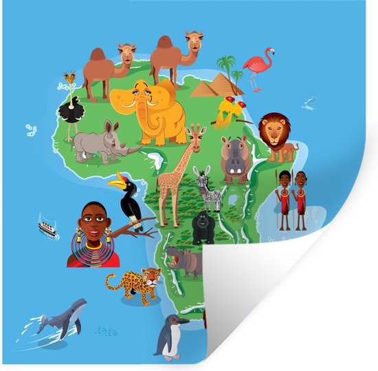 Sticker Muursticker L'illustration des Big Five - illustration de la carte de l' Afrique les Big Five - 30x30 cm - film adhésif autocollant - sticker mural repositionnable